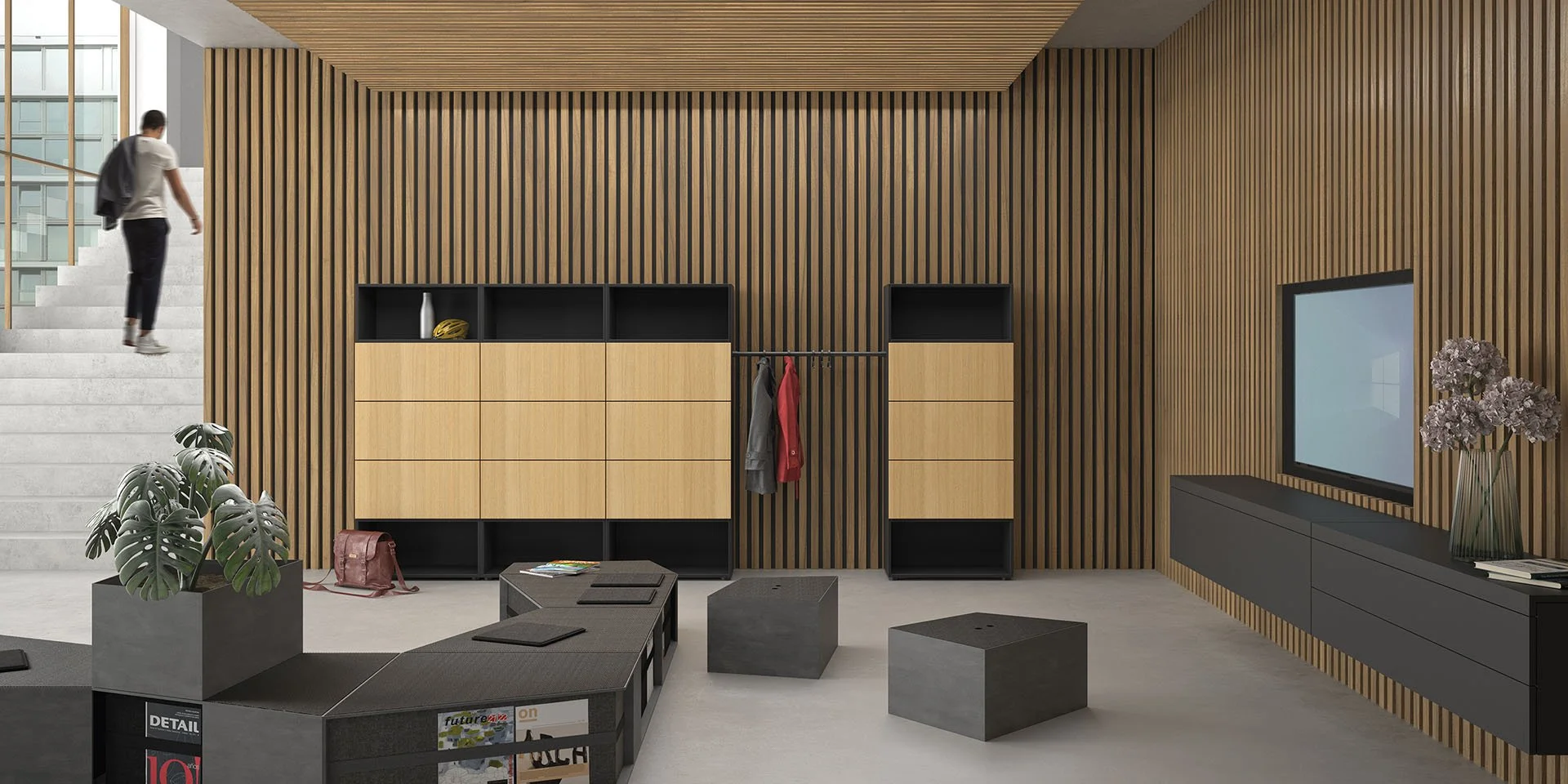 Premium finishes and refined detailing deliver bespoke joinery aesthetics with modular flexibility, elevating workplace perception while maintaining durability and commercial performance.